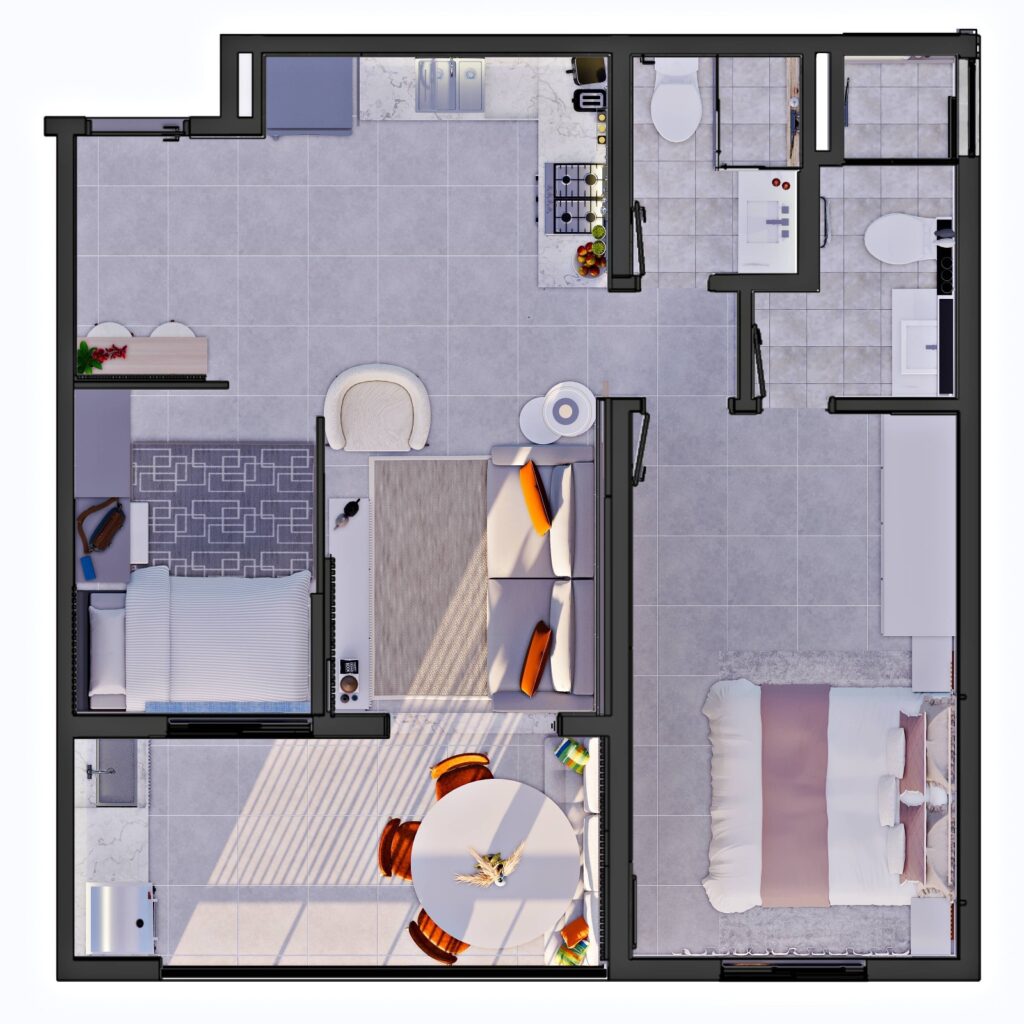 Apartamentos acessíveis à venda, unindo simplicidade e aconchego.